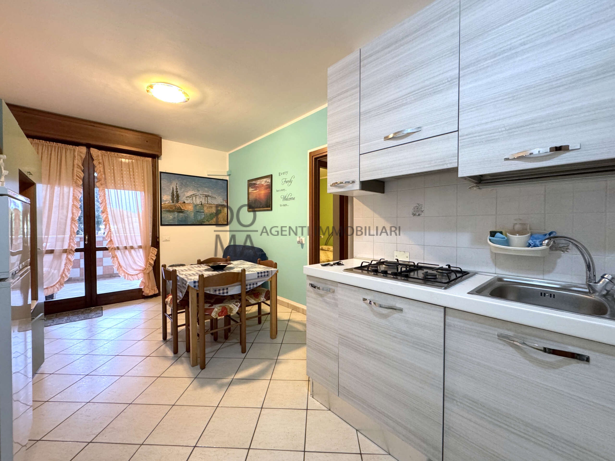 DOMA AGENTI IMMOBILIARI propone in vendita appartamento al secondo piano, servito da ascensore, in residence con piscina comodo a tutti i servizi e a 600 metri da Piazzale Europa. L’immobile presenta zona giorno con cucina a vista ed ampio ed abitabile terrazzo con affaccio sul mercatino serale di Viale dei Pini, disimpegno, bagno finestrato, camera da letto matrimoniale con armadio a muro e camera doppia. Impianto di riscaldamento a GPL, porta blindata, climatizzatore in pompa di calore, posto auto esclusivo all’interno del cortile condominiale accessibile con telecomando, cantina comune, ampi spazi comuni per le biciclette.