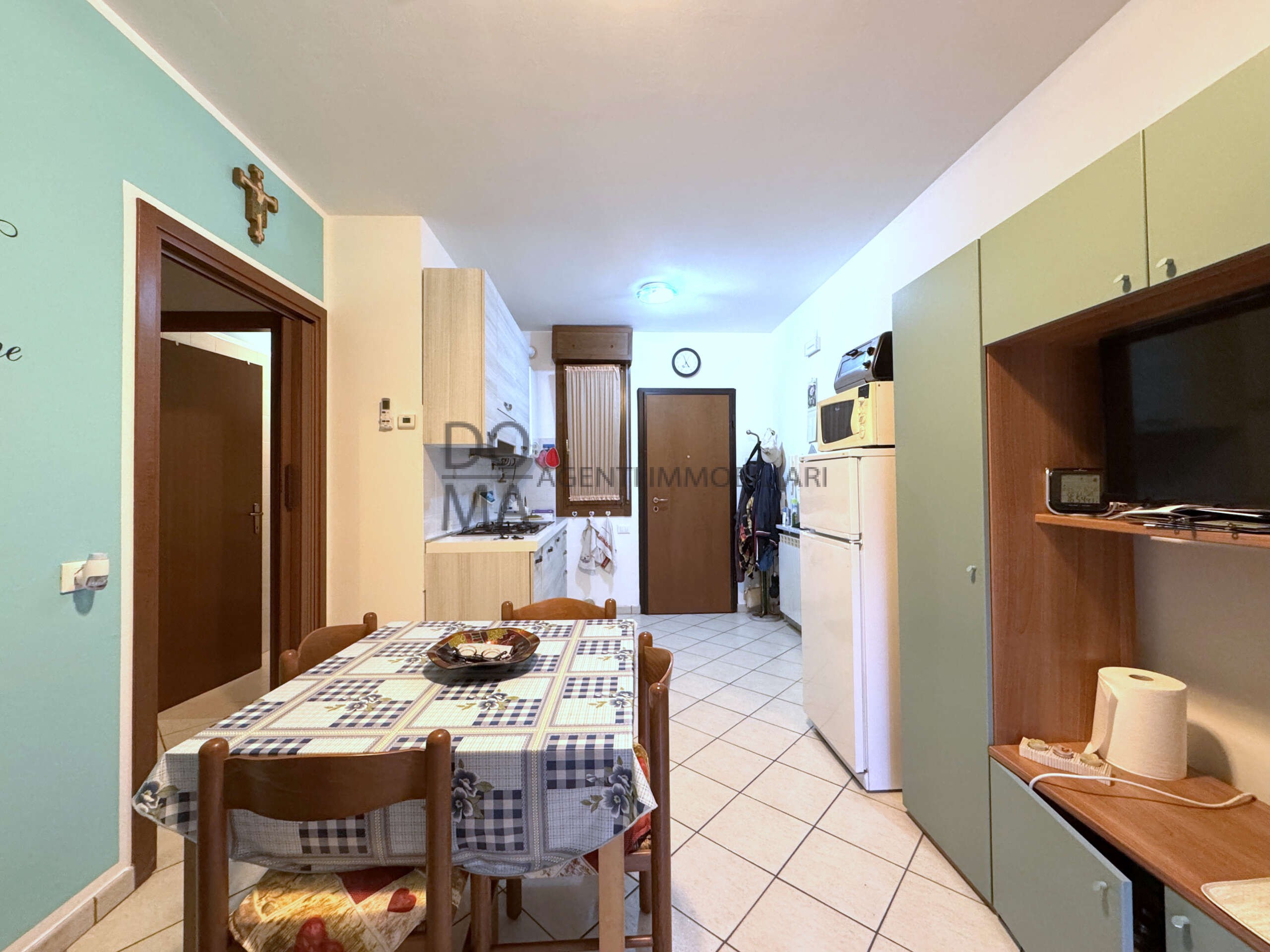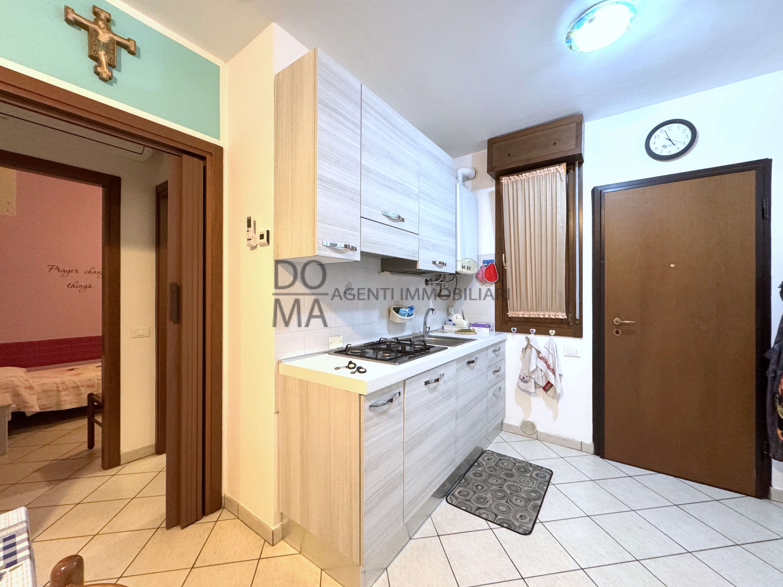 DOMA AGENTI IMMOBILIARI propone in vendita appartamento al secondo piano, servito da ascensore, in residence con piscina comodo a tutti i servizi e a 600 metri da Piazzale Europa. L’immobile presenta zona giorno con cucina a vista ed ampio ed abitabile terrazzo con affaccio sul mercatino serale di Viale dei Pini, disimpegno, bagno finestrato, camera da letto matrimoniale con armadio a muro e camera doppia. Impianto di riscaldamento a GPL, porta blindata, climatizzatore in pompa di calore, posto auto esclusivo all’interno del cortile condominiale accessibile con telecomando, cantina comune, ampi spazi comuni per le biciclette.