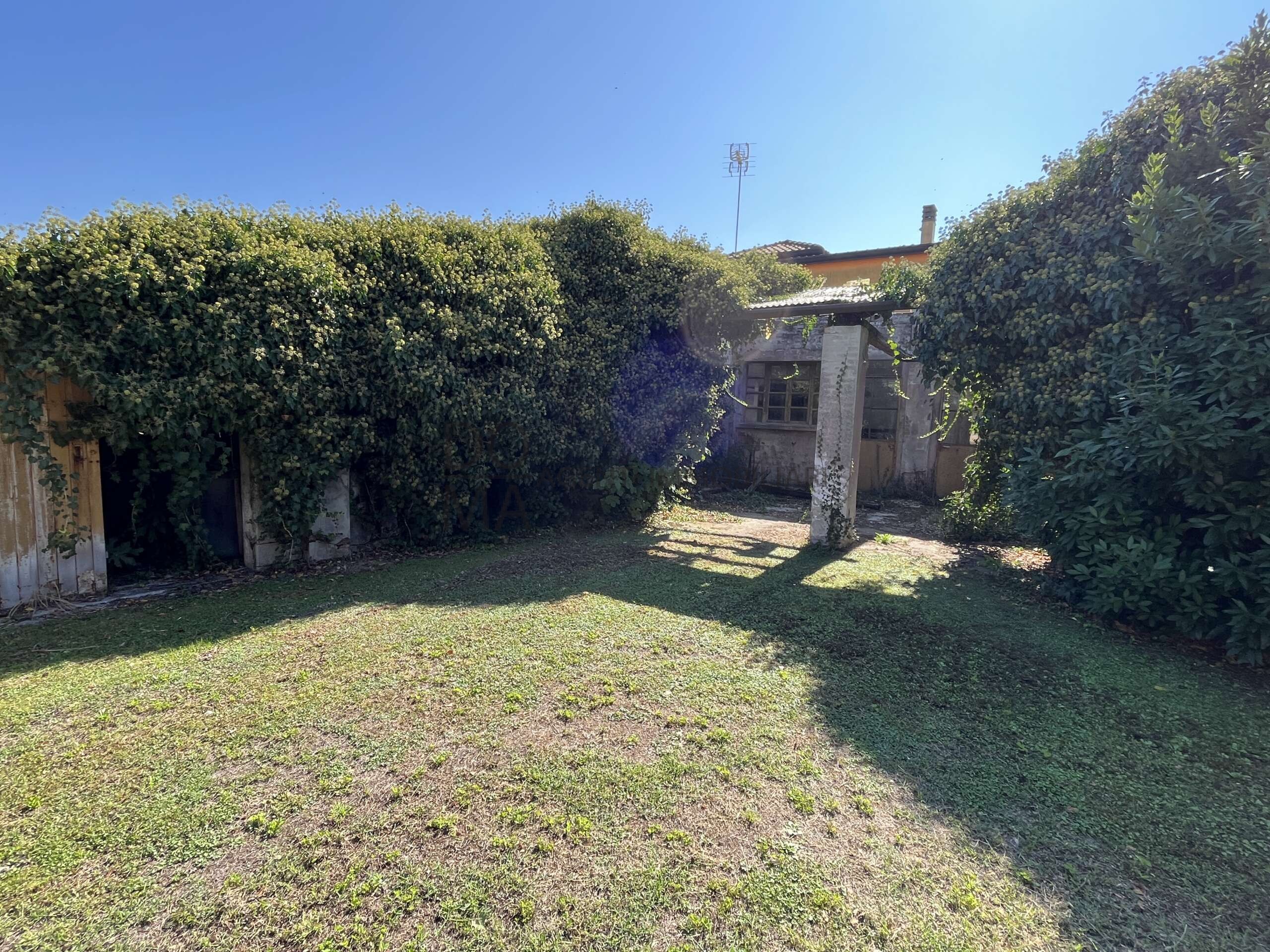 La casa presenta un piccolo giardino antistante e un vasto cortile sul retro ideale per momenti di assoluto relax, privacy, o per momenti di convivialità tra amici. A completare la proprietà sono presenti un garage indipendente, nove box/garage allineati, e un ampio laboratorio/officina da ristrutturare.