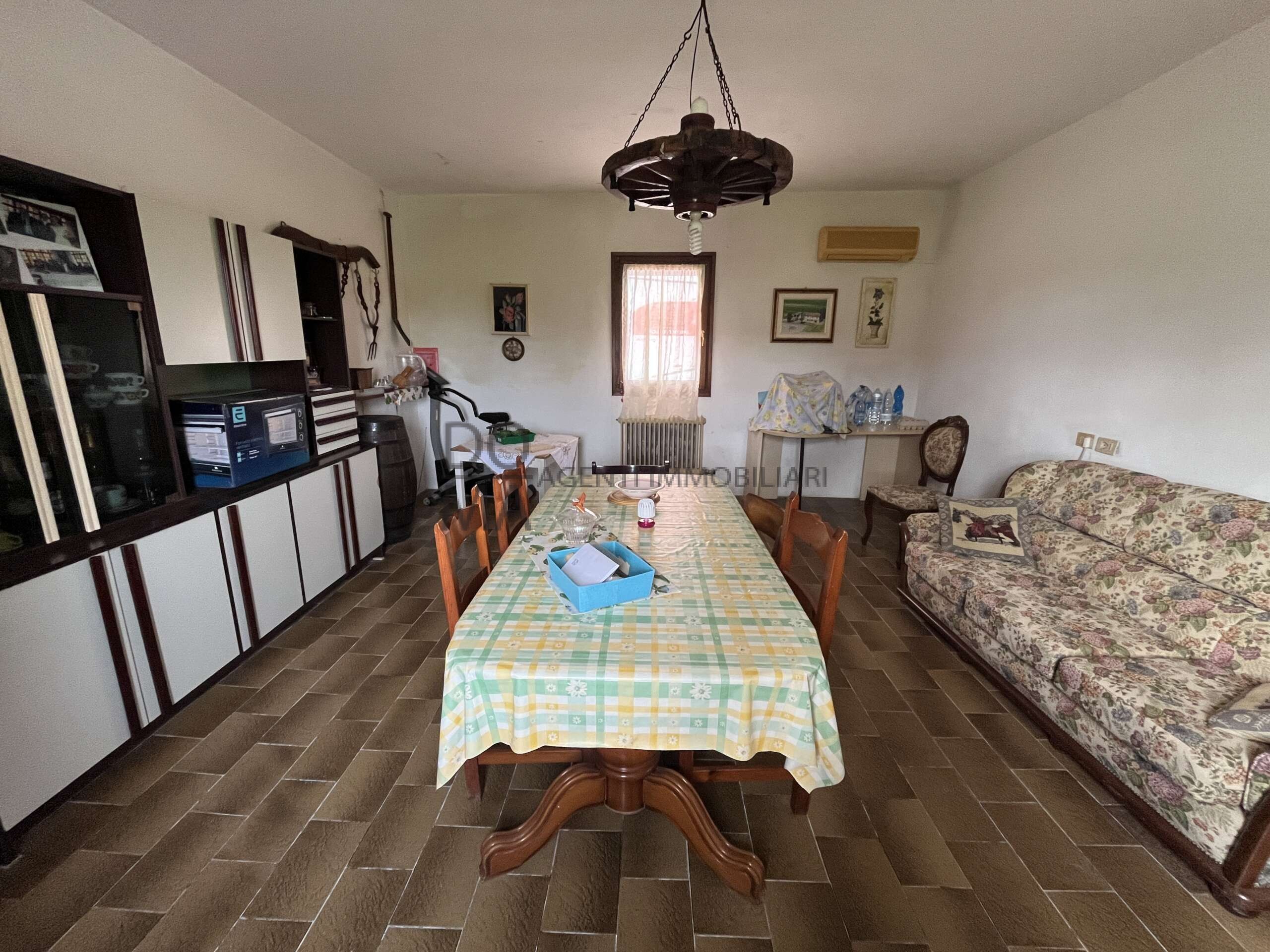 DOMA AGENTI IMMOBILIARI propone in vendita lungo Via Marina a Gorino Sullam (frazione di Taglio di Po) casa singola di circa 200 mq disposta su due livelli e abitabile da subito. Ingresso, soggiorno, sala da pranzo, cucina e bagno al piano terra mentre al primo piano vi sono tre camere da letto matrimoniali e il bagno principale. Ex stalla e ricovero attrezzi agricoli nel cortile privato raggiungibile da vialetto sterrato. Possibilità di acquisto del terreno agricolo adiacente (fino a 10 ettari).