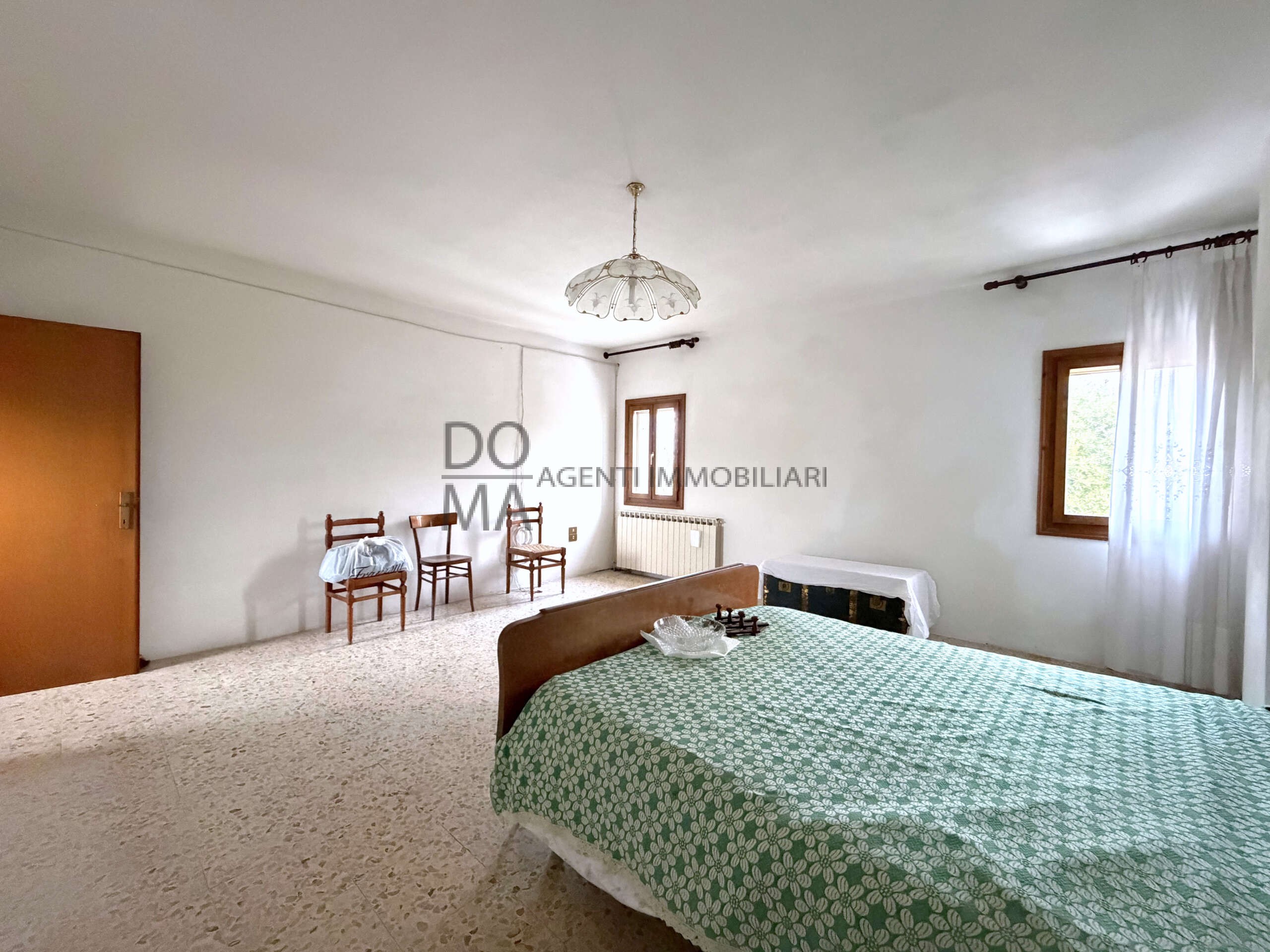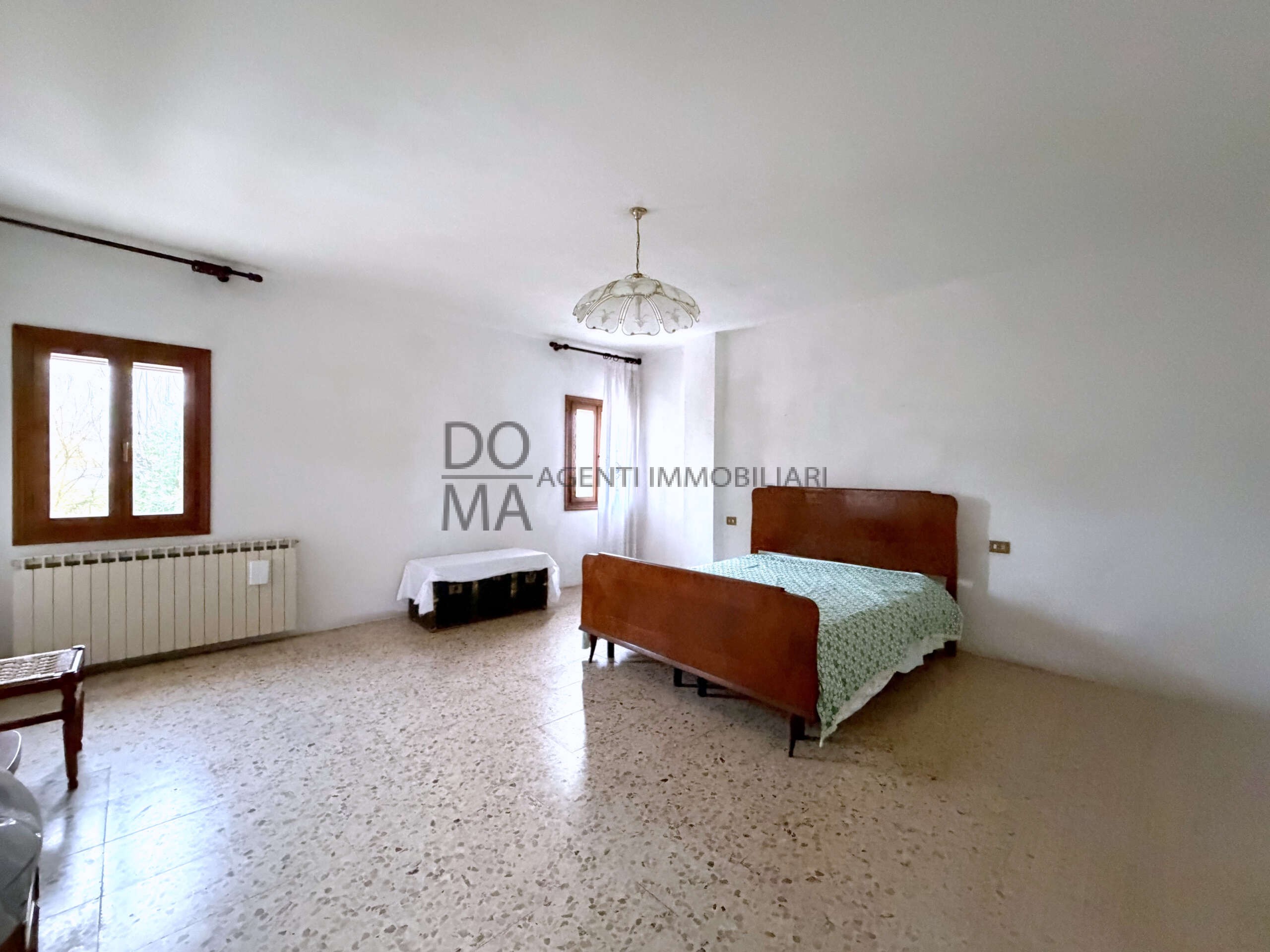 L’abitazione, ampliata e ristrutturata negli anni ’90, si sviluppa come un’unica unità ma è stata progettata con la predisposizione per una possibile suddivisione in due abitazioni indipendenti, rendendola particolarmente interessante anche per nuclei familiari numerosi. Al piano terra si sviluppa la zona giorno con ingresso, un’ampia area living con cucina e camino, perfetta per momenti di convivialità, oltre a locale caldaia e pratico ripostiglio. Al primo piano si trova la zona notte composta da tre spaziose camere matrimoniali, una camera singola e un bagno. Completano la proprietà un garage, vari ripostigli esterni e un ampio terreno di circa 7.000 mq che circonda l’abitazione, offrendo numerose possibilità di utilizzo, dal giardino privato allo spazio per attività all’aperto. Una soluzione versatile, immersa nel verde ma ben collegata, ideale per chi desidera vivere lontano dal caos senza rinunciare alla comodità dei servizi.