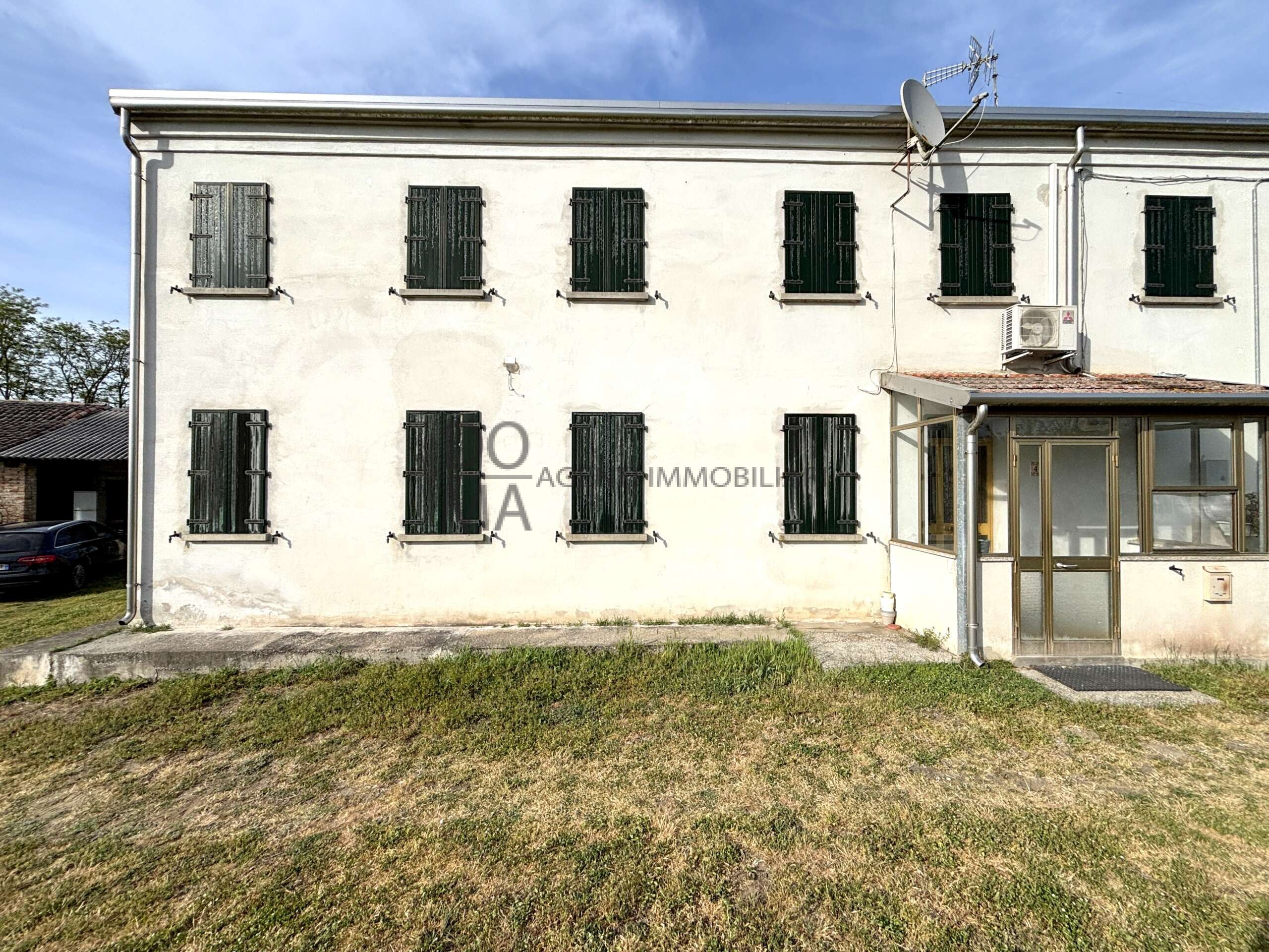 DOMA AGENTI IMMOBILIARI propone in vendita ad Ariano nel Polesine a pochi minuti dalla Strada statale Romea, porzione di bifamiliare con ampio giardino di proprietà. L’immobile, recentemente ristrutturato, presenta al piano terra: ingresso, soggiorno, cucina abitabile, ripostiglio e bagno finestrato. Al primo piano una camera da letto matrimoniale e una camera da letto doppia. A completare la proprietà troviamo un comodo giardino di 5500 metri nel quale sono presenti due ulteriori fabbricati di proprietà, utilizzabili come garage e bassi comodi.