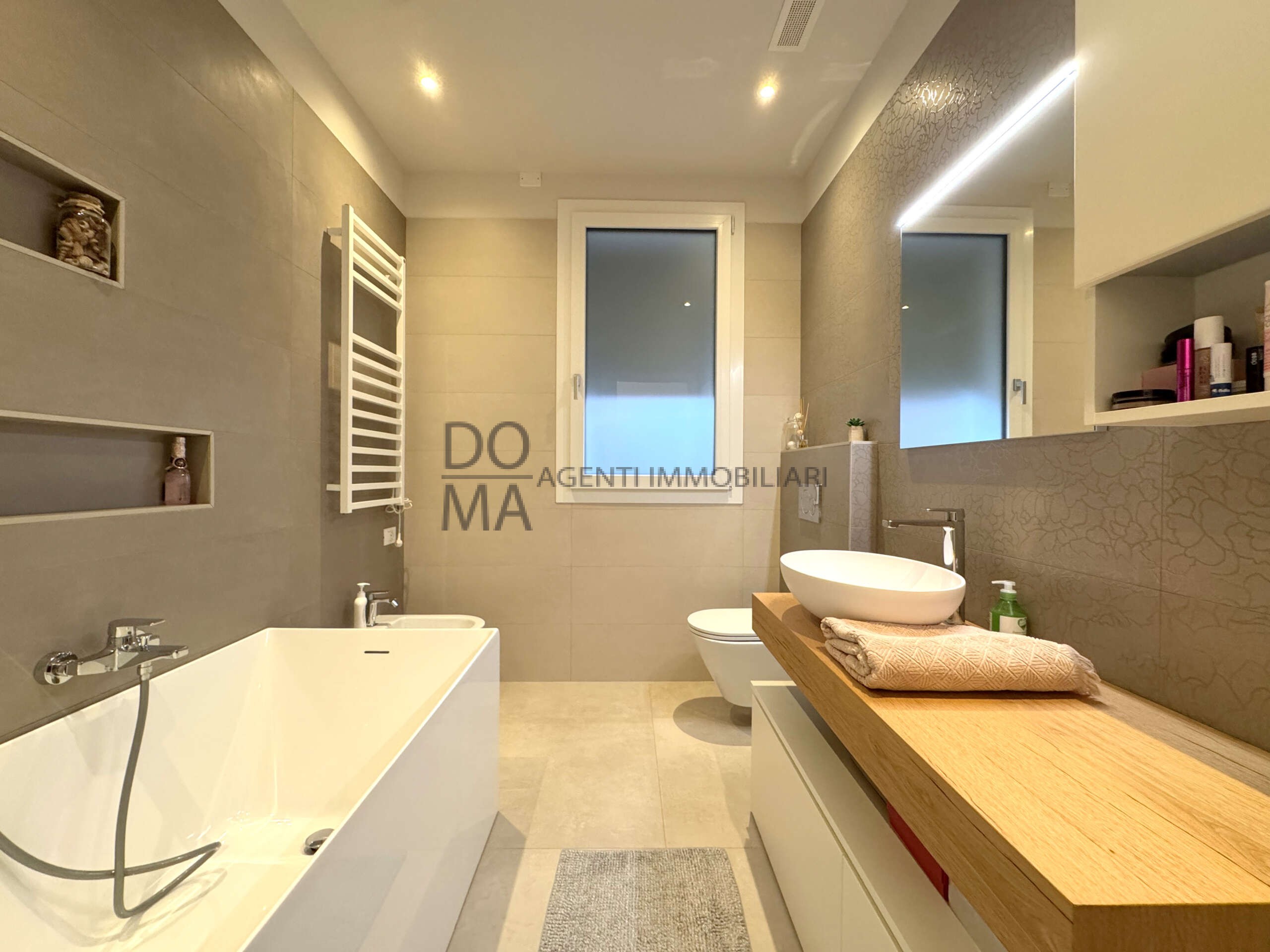 DOMA AGENTI IMMOBILIARI propone in vendita a Porto Viro, una villa bifamiliare e disposta su due livelli. L’abitazione, realizzata secondo i più elevati standard di efficienza energetica, è in classe A4 ed è dotata di cappotto termico da 17 cm, ventilazione meccanica controllata (VMC), impianto di riscaldamento e raffrescamento, oltre ad impianto fotovoltaico con batterie di accumulo, garanzia di sostenibilità e bassi consumi. L’ingresso conduce ad una ampia zona giorno open space, luminosa e perfettamente organizzata, con elegante vetrata che crea un collegamento armonioso con il giardino sul retro ideale per vivere momenti di relax in totale privacy. La cucina su misura, realizzata in legno, è inclusa nel prezzo e si integra con stile negli ambienti, conferendo calore e carattere alla zona living. Sempre al piano terra trovano spazio un bagno, oltre a un vano tecnico e lavanderia, funzionali e ben distribuiti. Salendo al primo piano si accede alla zona notte, composta da una camera matrimoniale, una camera doppia e una camera singola, ambienti accoglienti e ben proporzionati. Completa il piano un comodo ripostiglio e un ampio bagno con vasca dal design raffinato, pensato come spazio di benessere quotidiano. Gli interni sono ulteriormente impreziositi da finiture ricercate e da un sistema di illuminazione a LED che dona agli ambienti un’atmosfera calda e moderna, esaltando la qualità della ristrutturazione e l’armonia degli spazi. A completare la proprietà ricovero attrezzi, pergolato e giardino.